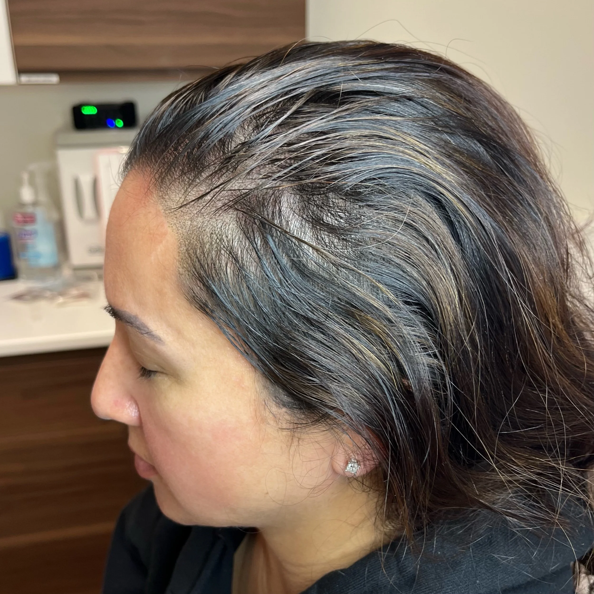 Scalp Micropigmentation (SMP) is a non-surgical solution to hair loss. Its purpose is to give the illusion of hair follicles and add more density by tattooing pigments into the scalp. SMP can benefit both men & women. Hair lines can become more defined and thinning hair can be disguised with SMP. Hair is not required for SMP - a full bald head can take up to six hours to create an entire new look. camoglam beauty inc. uses a technique that will give you the most natural looking results. Book your free consultation to get a quote!