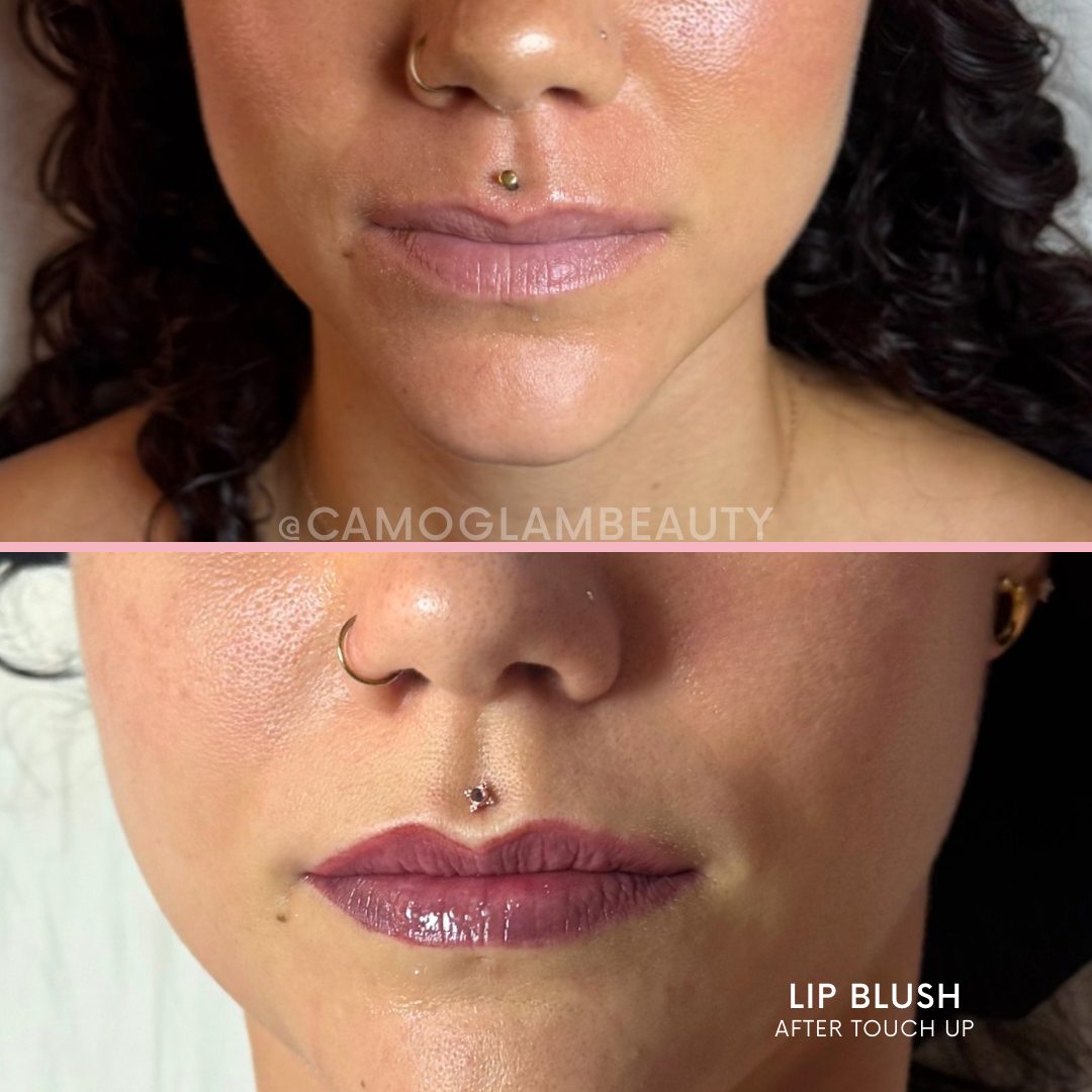 Lip blushing is a semi-permanent cosmetic tattoo that enhances the lip color and shape. Select your custom lip color and control the brightness, fullness & shape of your lips. PHOTOS